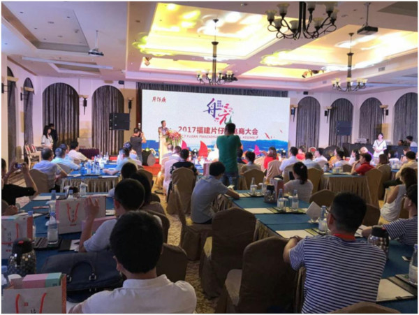 2017年7月19日,随着第七日贸易有限公司、厦门萱姿贸易有限公司、杭州昆汀科技股份有限公司等众多加盟商负责人、代表悉数签到就坐后,片仔癀电子商务有限公司执行董事林国强走上舞台,致开幕词,并宣布2017片仔癀电商大会正式开始。